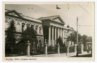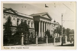 Santiago, (Chile) Congreso Nacional [fotografía]. Santiago : [Editor no identificado, Entre 1939 y 1945]. 1 tarjeta postal : fotografía, fotomecánico monocromo sobre papel ; 13 x 7,8 cm. .