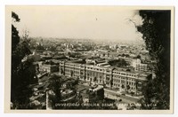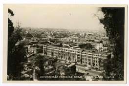 Universidad Católica desde Cerro Santa Lucía [fotografía]. Santiago : [Editor no identificado, Entre 1940 y 1949]. 1 tarjeta postal : fotografía, monocromo, gelatina sobre papel ; 14 x 9 cm. .