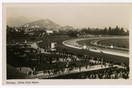 Santiago, (Chile) Club Hípico [fotografía]. Santiago : [Editor no identificado , 19uu]. 1 tarjeta postal : fotografía, monocromo, gelatina sobre papel ; 14 x 9 cm. .
