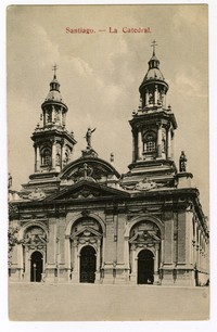 Materias: Edificios, estructuras, etc - Edificios históricos - Arquitecto - Catedral de Santiago (Chile) - Catedrales - Santiago (Chile : Ciudad) - Toesca, Joaquín - Decoración y ornamentación de iglesias - Historia - Arquitectura religiosa - Fotografías - Tarjetas postales
