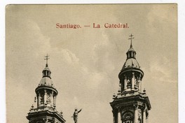 Santiago.- La Catedral [fotografía] / Hume y Ca. Santiago : Hume y Ca. , [19uu]. 1 tarjeta postal : colotipo, fotomecánico monocromo sobre papel ; 8,7 x 13,7 cm. .