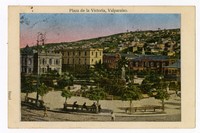 Plaza de la Victoria, Valparaíso [fotografía] / Eggers & Cia. Valparaíso : Eggers & Cia. , [entre 1895 y 1905]. 1 tarjeta postal : medio tono, fotomecánico policromo sobre papel ; 14 x 9 cm. .
