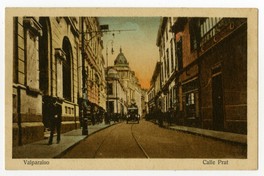 Valparaíso Calle Prat [fotografía] / Grimm & Kern. Valparaíso : Grimm & Kern , [entre 1911 y 1920]. 1 tarjeta postal : colotipo, fotomecánico policromo sobre papel ; 14 x 9 cm. .