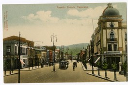 Materias: Tranvías - Alumbrado público - Avenida Victoria (Valparaíso, Chile) - Valparaiso (Chile : Ciudad) - Historia - Fotografías - Arquitectura - Tarjetas postales - Urbanismo