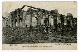 Valparaiso despues del Terremoto del 16 de agosto 1906 : La Recoba del Cardonal C. Kirsinger & Cia. Valparaíso : C. Kirsinger & Cia. , 1906. 1 tarjeta postal : colotipo, fotomecánico monocromo sobre papel ; 14 x 9 cm. .