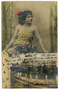1 tarjeta postal : fotografía, monocromo, gelatina sobre papel ; 14 x 9 cm.