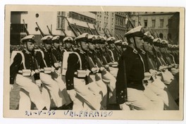 Valparaiso, [Desfile naval] [fotografía]. Valparaíso : [Editor no identificado] , 1955. 1 tarjeta postal : fotografía, monocromo, gelatina sobre papel ; 13,2 x 7,2 cm. .