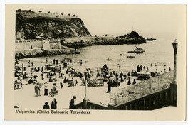 Valparaiso (Chile), Balneario Las Torpederas [fotografía]. Valparaíso : [Editor no identificado , Entre 1939 y 1945]. 1 tarjeta postal : fotografía, monocromo, gelatina sobre papel ; 14 x 9 cm. .
