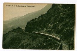 Tabón, F. C. de Santiago a Valparaíso [fotografía]. Valparaíso : [Editor no identificado , Entre 1874 y 1950]. 1 tarjeta postal : huecograbado, fotomecánico monocromo sobre papel ; 14 x 9 cm. .