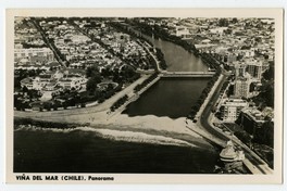 Viña del Mar (Chile), Panorama [fotografía]. Chile : [Editor no identificado] , 1961. 1 tarjeta postal : fotografía, monocromo, gelatina sobre papel fibra ; 14 x 9 cm. .