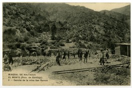 Mineral de Naltagua El Monte (Prov. de Santiago). 3-Cancha de la mina San Ramon [fotografía] Chile : [Editor no identificado , entre 1910 y 1920]. 1 tarjeta postal : colotipo, monocromo, gelatina sobre papel fibra ; 13,7 x 9 cm. .