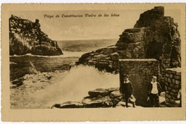 Playa de Constitucion, Piedra de Los Lobos [fotografía]. Chile : [Editor no identificado] , 1922. 1 tarjeta postal : colotipo, fotomecánico monocromo sobre papel fibra ; 13,8 x 8,8 cm. .