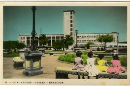 Materias: Arquitectura del paisaje - Plaza España (Concepción, Chile) - Empresa de los Ferrocarriles del Estado (Chile) - Historia - Fotografías - Arquitectura - Concepción (Chile) - Retratos - Estaciones de ferrocarril - Tarjetas postales - Niñas - Urbanismo