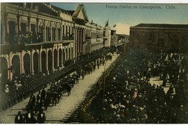 Fiestas Patrias en Concepcion. Chile [fotografía] Juan M. Sepúlveda V. [Chile Juan M. Sepúlveda V. Santiago : Juan M. Sepúlveda V. , [Entre 1912 y 1922]. 1 tarjeta postal : colotipo, fotomecánico policromo sobre papel fibra ; 14 x 9 cm. .