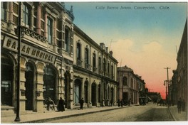 Calle Barros Arana. Concepcion. Chile [fotografía] / Juan M. Sepúlveda V. Concepción : Juan M. Sepúlveda V. , [entre 1912 y 1921]. 1 tarjeta postal : colotipo, fotomecánico policromo sobre papel fibra ; 14 x 9 cm. .