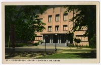 17 - Concepción (Chile) - Escuela de Leyes [fotografía]. Concepción : [Editor no identificado , Entre 1950 y 1960] 1 tarjeta postal : fotografía, policromo coloreado, gelatina sobre papel fibra ; 14 x 9 cm. .