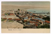 Coronel, Vista de la ciudad [fotografía] / Carlos Brandt. Concepción : Carlos Brandt , [Entre 1900 y 1909]. 1 tarjeta postal : colotipo, fotomecánico policromo sobre papel fibra ; 14 x 9 cm. .