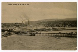 Lota Muelle de la Cia. de Lota [fotografía] / Carlos Bivort. Lota : Carlos Bivort , [Entre 1909 y 1919]. 1 tarjeta postal : colotipo, fotomecánico monocromo sobre papel fibra ; 14 x 9 cm. .