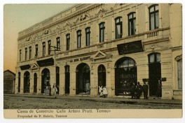 Cassa de Comercio Calle Arturo Pratt. Temuco [fotografía] / P. Heintz Santiago : P. Heintz, [19uu], 1 tarjeta postal : colotipo, fotomecánico policromo sobre papel fibra ; 14 x 9 cm. .