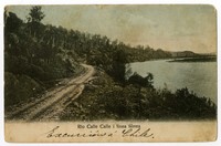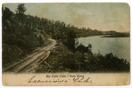 Rio Calle Calle i linea férrea, Excursión á Chile [fotografía]. Chile : [Editor no identificado , Entre 1937 y 1947]. 1 tarjeta postal : colotipo, fotomecánico policromo sobre papel fibra ; 14 x 9 cm. .