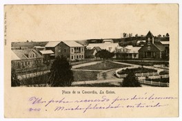 Plaza de la Concordia, La Union [fotografía] / R. Siegle. La Unión : R. Siegle , [19uu]. 1 tarjeta postal : colotipo, fotomecánico monocromo sobre papel fibra ; 14 x 9 cm. .