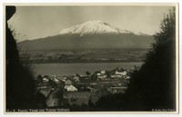 No. 3 Puerto Varas con Volcán Calbuco [fotografía] / E. Karl. Puerto Varas : E. Karl , [entre 1930 y 1940]. 1 tarjeta postal : fotografía, monocromo, gelatina sobre papel fibra ; 14 x 9 cm. .