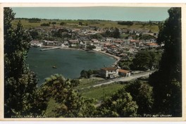 Puerto Varas Chile [fotografía] / Foto Kurt Grassau. Chile : Foto Kurt Grassau, [Entre 1954 y 1960] 1 tarjeta postal : fotografía policromo, gelatina sobre papel fibra ; 14 x 9 cm. .