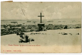 Materias: Historia - Fotografías - Arquitectura - Décimosegunda Región (Chile) - Patagonia (Argentina y Chile) - Punta Arenas (Chile) - Tarjetas postales - Urbanismo - Embarcaciones - Hutchings, A. - Cerro de la Cruz (Chile)