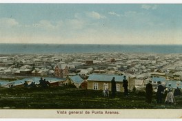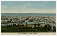Vista general de Punta Arenas [fotografía]. Punta Arenas : [Editor no identificado , Entre 1900 y 1910]. 1 tarjeta postal : colotipo, fotomecánico policromo sobre papel ; 14 x 9 cm. .