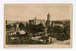 Plaza Munoz Gamero-Magallanes Chile [fotografía]. Punta Arenas : [Editor no identificado , Entre 1920 y 1930]. 1 tarjeta postal : fotografía, monocromo gelatina sobre papel ; 14 x 9 cm. .