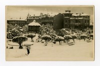[Nieve en Punta Arenas; Plaza de Armas] [fotografía]. Magallanes : Handler : [1930]. 1 tarjeta postal : fotografía, monocromo, gelatina sobre papel ; 14 x 9 cm. .