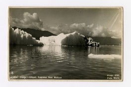 Chile.- Ofqui, Laguna San Rafael [fotografía] / Santiago : Foto Mora , [Entre 1930 y 1935]. 1 tarjeta postal : fotografía, monocromo, gelatina sobre papel ; 9 x 14 cm. .