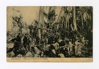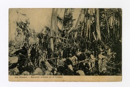 Isla Dawson - Sacando arboles en el bosque [fotografía] / A. K. Punta Arenas : A. K. , [Entre 1908 y 1910]. 1 tarjeta postal : colotipo, fotomecánico monocromo sobre papel ; 14 x 9 cm. .