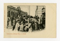 Costumbres chilenas Plata a la chuña [fotografía] / Carlos Brandt. Concepción : Carlos Brandt, [Entre 1899 y 1909]. 1 tarjeta postal : fotografía, monocromo, gelatina sobre papel ; 14 x 9 cm. .