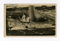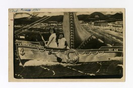 [Retrato de dos niñitas en el bote "La Reina de los Mares, Antofagasta Chile] [fotografía]. Antofagasta : [Editor no identificado] , 1951. 1 tarjeta postal : fotografía, monocromo, gelatina sobre papel ; 10 x 7,3 cm. .