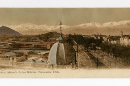 Materias: Historia - Arquitectura religiosa - Fotografías - Arquitectura - Tarjetas postales - Cordillera de los Andes - Urbanismo - Cerro San Cristóbal (Chile) - Avenida Libertador Bernardo O'Higgins (Santiago, Chile) - Palacios - Santiago (Chile : Ciudad) - Edificios, estructuras, etc - ALAMEDA DE LAS DELICIAS (SANTIAGO, CHILE: CALLE)