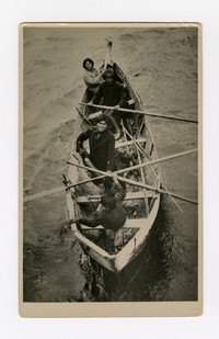 Indios Alakalufes [alle sind froh und vergnügt-vounchen ja keine miete wieder steuern zu bezahlen] [fotografía] / Fotografía Handler. Magallanes : Fotografía Handler , [1930]. 1 tarjeta postal : fotografía, monocromo, gelatina sobre papel fibra ; 9 x 14 cm. .
