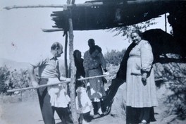 [Juana Díaz, María Fuenzalida y Manuel Tapia frente a horno de barro] [Fotografía].