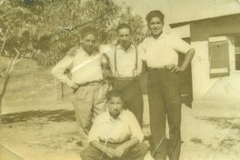 [Retrato de grupo: Cornelio Báez Arias, Juan Riquelme, René González y Alfonso Báez] [Fotografía]. Chile : [Editor no identificado] , 1958 1 Fotografía : Formato digital. .