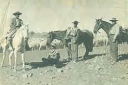 [Faena de arreo de ganado:Víctor Araya, Juan Donaire, Carlos Gómez, Francisco Ponce Araos ] [Fotografía]. Chile : [Editor no identificado] , 1950 1 Fotografía : Formato digital. .