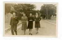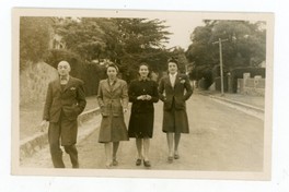 Alfonso Casanova Vicuña, Edith Larraín de Casanova, Miriam Casanova Larraín y Adelina Casanova Vicuña; en Zapallar, bajando la calle [fotografía].