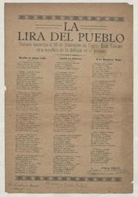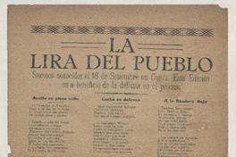 La Lira del pueblo : sucesos acaecidos el 18 de Septiembre en Cogotí / Jimny Rebelde. Cogoti : [Impresor no identificado], 1923. 1 hoja ; 39 x 26 cm. .