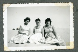 [Retrato grupal de Carmen Aguirre, Teresa Arellano y María Tapia en en la playa] [fotografía] Chile : [Editor no identificado] , 1957. 1 Fotografía : Formato digital. .