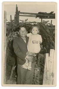 En la fotografía aparece: Pedro Felipe Valdés Gallardo sosteniendo en brazos a Angélica Valdés Concha.