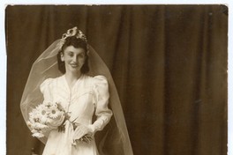 [Retrato individual de Marina Llarllurrie vestida de novia] [Fotografía]. Chile : [Editor no identificado] , 1942. 1 Fotografía : Formato digital, monocromo. .