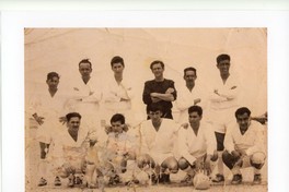 [Retrato grupal de equipo de fútbol en la plaza de Caldera] [Fotografía].
