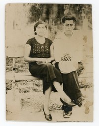 [Retrato de una pareja sentada en la plaza de Caldera] [Fotografía]. Chile : [Editor no identificado] , 1937. 1 Fotografía : Formato digital. .
