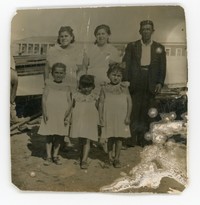 En la fotografía aparece: Iris Gallardo Montes de Oca, Olga Montes de Oca Godoy, Arcadio Gallardo Olivares, Olga Gallardo Montes de Oca, Blanca Gallardo Montes de Oca y Elena Gallardo Montes de Oca.