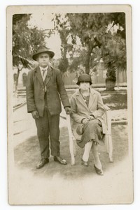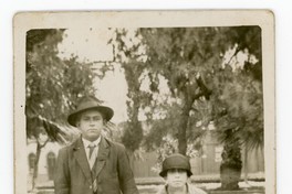 [Arcadio Gallardo junto a Rosario Gallardo en la plaza de Antofagasta] [Fotografía]. Chile : [Editor no identificado] , 1928. 1 Fotografía : Formato digital. .