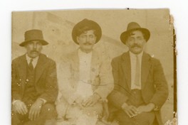 [Retrato grupal de tres hombres] [Fotografía]. Chile : [Editor no identificado] , [1930?]. 1 Fotografía : Formato digital. .